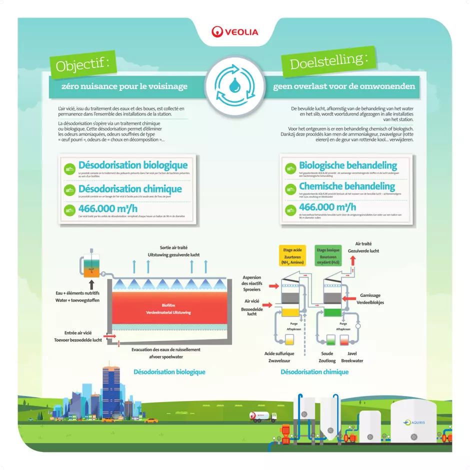 The deodorisation units treat 466,000 m³ of foul air per hour. That is equivalent to filling a 96 metre diameter balloon every hour.